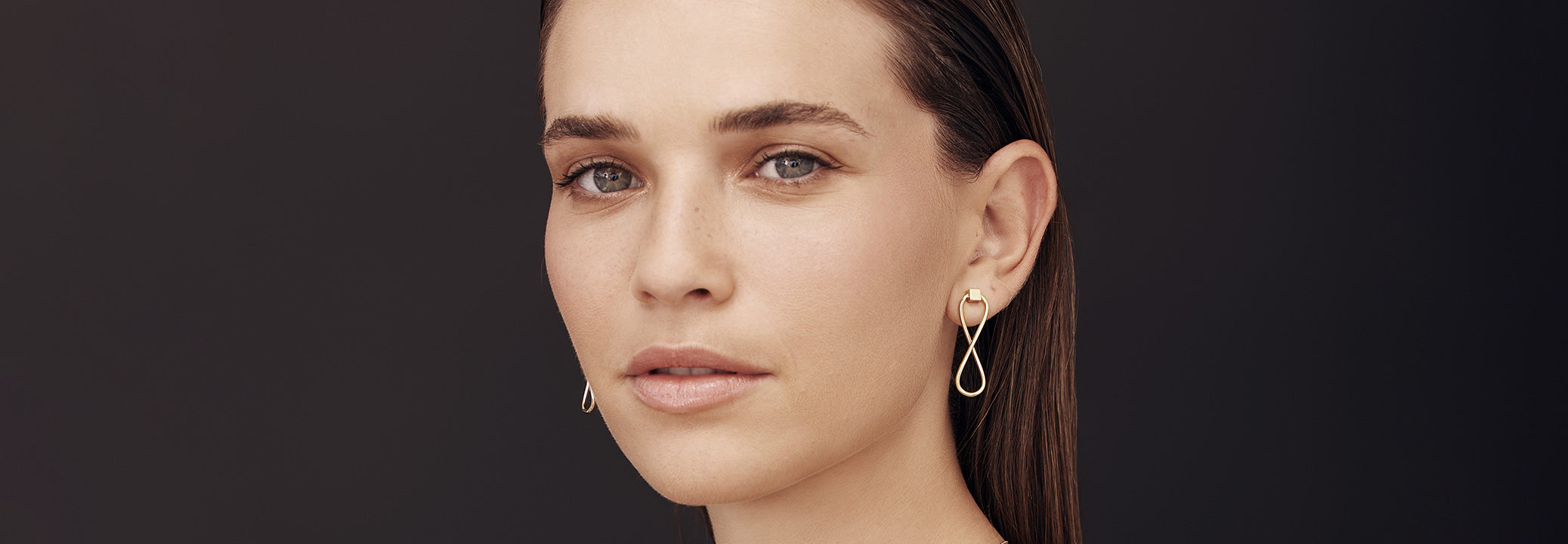 עגילים לאישה מזהב צהוב 14 קראט - לואיז