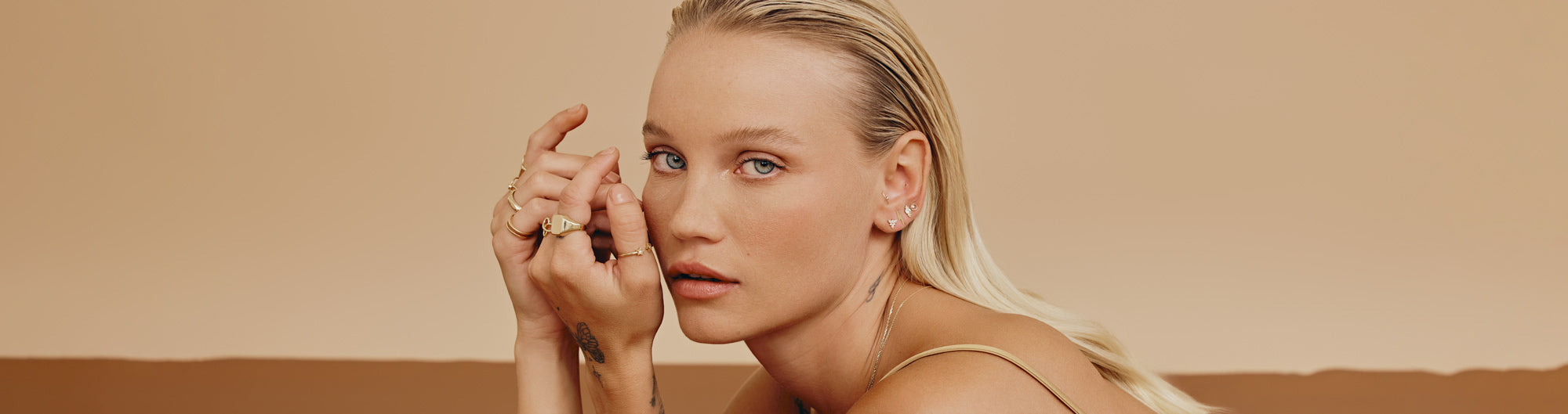 עגילים צמודים מזהב צהוב 14 קראט - היידן