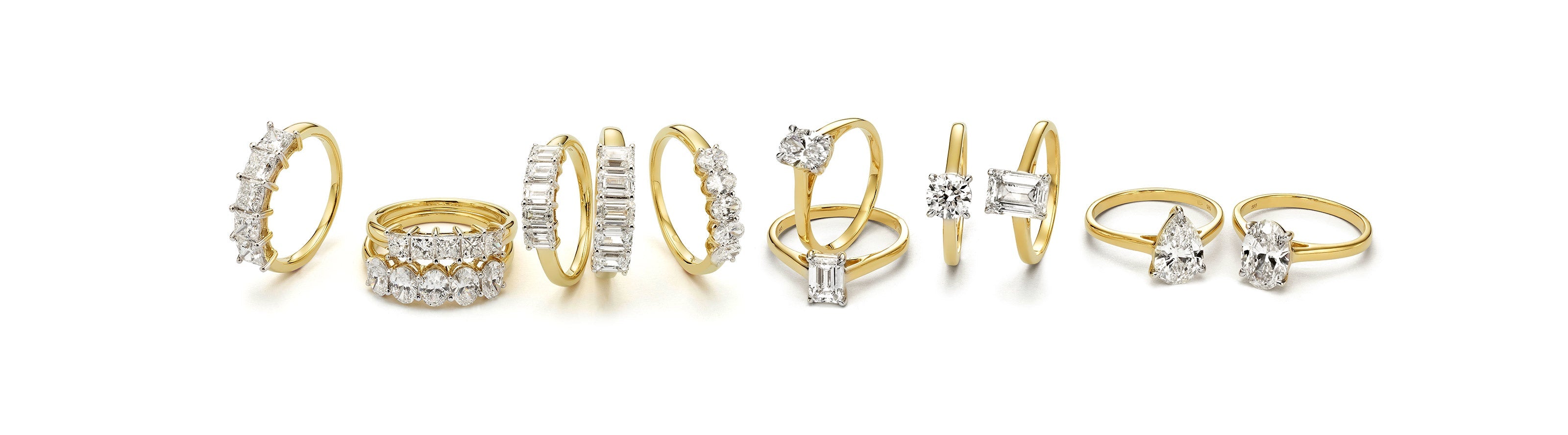 טבעת יהלומי מעבדה מזהב צהוב 14K - שורה עגולות 2 קראט