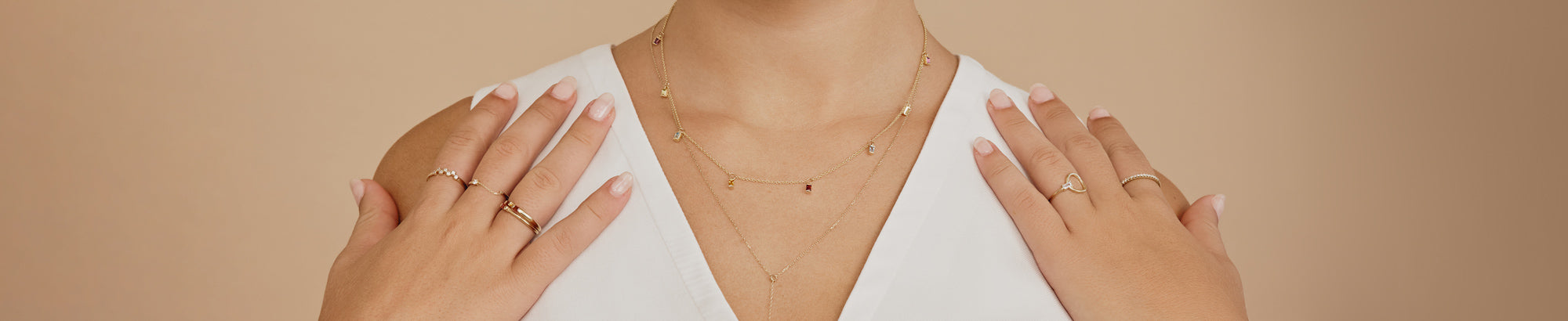 שרשרת אבנים יקרות מזהב צהוב 14 קראט - אוריון